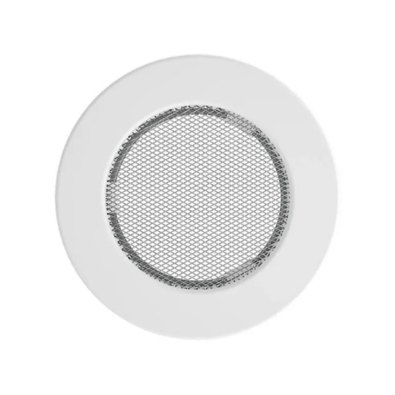 Grila rotunda alba, cu design modern ofera rezistenta excelenta la temperaturi ridicate si asigura o circulatie eficienta a aerului in orice spatiu.