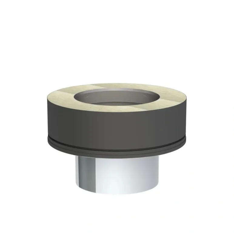 Element de legatura din otel inoxidabil, ce inchide peretele dublu cu izolatie si face trecerea la peretele simplu. Vopsit negru in camp electrostatic.