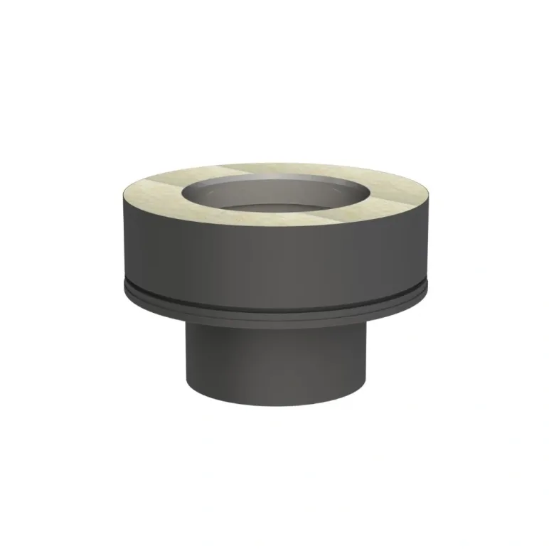 Adaptorul burlan izolat la tubulatura simpla DW Black 50 FI150 este un element esential in instalarea sistemelor de evacuare a gazelor. Fabricat din otel inoxidabil de inalta calitate, acest adaptor asigura trecerea sigura de la un perete dublu cu izolatie la un perete simplu. Acesta ofera o solutie eficienta si durabila, fiind ideal pentru orice tip de instalatie de cos de fum. Adaptorul este vopsit electrostatic in negru, ceea ce ii confera un aspect modern si o rezistenta sporita la factorii de mediu. Vopsirea electrostatica asigura o protectie suplimentara impotriva uzurii si coroziunii, prelungind astfel durata de viata a produsului.