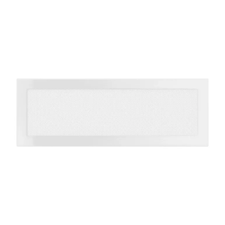 Grila metalica de evacuare a aerului cald din hota semineului, vopsita electrostatic in culoarea alba, avand dimensiunile 17 / 49 cm.