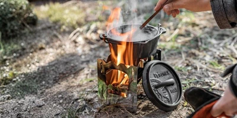 Se asambleaza arzatorul, se aseaza pe o suprafata stabila, se incarca cu surcele/lemnisoare sau carbuni, se aprinde, apoi se pozitioneaza vasul de gatit deasupra.