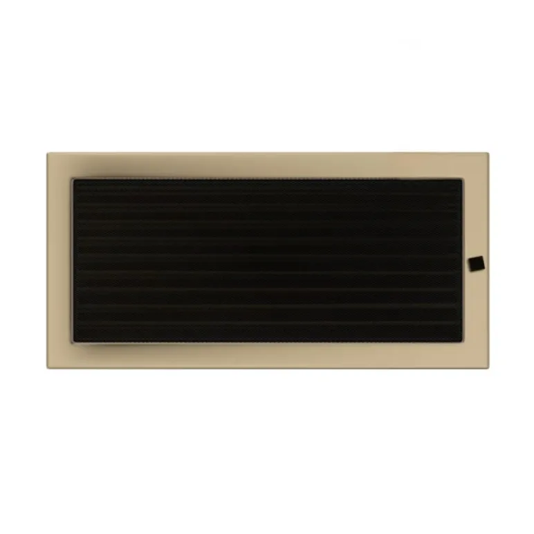 Model de grila cu un design clasic si rafinat, ce adauga un plus de eleganta oricarui spatiu. Este prevazuta cu jaluzea integrata, are finisaj auriu si dimensiunea de 22x45 cm.