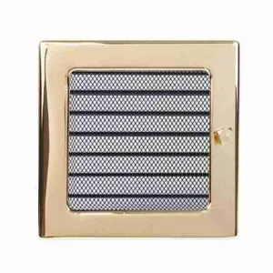 Grila de semineu cu jaluzea pentru controlul fluxului de aer. Rama eleganta, galvanizata si aurita ce isi pastreaza culoarea indiferent de temperaturile inalte.