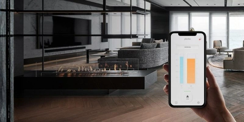 In plus, semineul poate fi controlat prin aplicatia Planika FLA4, disponibila pe dispozitive mobile. Aceasta ofera acces rapid la controlul flacarii, afisarea mesajelor de stare, monitorizarea combustibilului si programarea timpului de functionare.
