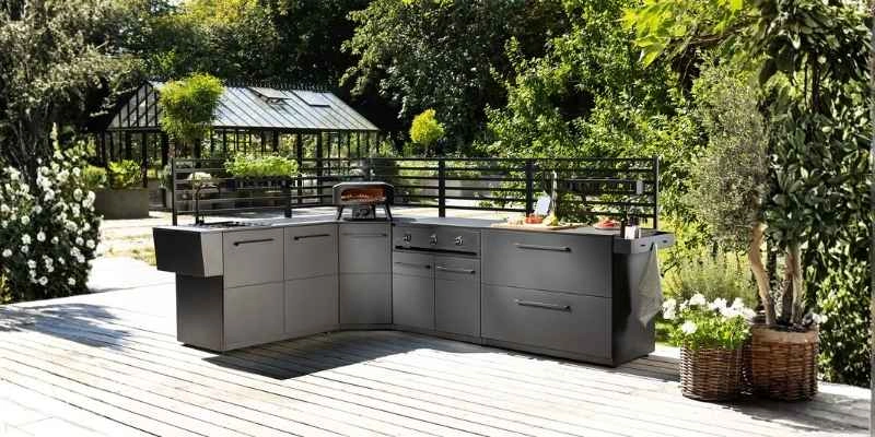 Colectia COZZE permite extinderea bucatariei de exterior cu piese compatibile, astfel incat spatiul sa fie configurat in functie de nevoi. Pe langa corpul cu sertare, pot fi adaugate corpuri cu usi si suport pentru butelie, varianta cu chiuveta si un frigider integrabil, iar pentru asezari in L exista si piesa de colt. Accesoriile pentru panourile tip grilaj aduc organizare pe verticala, cu carlige si rafturi pentru ustensile la indemana. Elementele LED se monteaza pe grilaje si ofera iluminare practica pentru utilizare si seara.