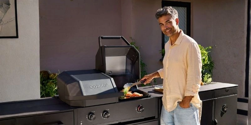 Sistemul modular COZZE XXL in forma de L este compusa din corpuri care se imbina precis, oferind mult spatiu de lucru si depozitare. Modulul de chiuveta de 110 cm aduce punctul de apa langa zona de gratar, iar modulul de colt completeaza ansamblul cu suprafata suplimentara si spatiu util in zona de colt. Frigiderul de 63 litri cu usa din sticla pastreaza bauturile si ingredientele la temperatura potrivita, reglabila intre 3 si 10°C prin panou digital tactil. Usa securizata montabila pe ambele parti si iluminarea LED din interior se potrivesc natural cu designul bucatariei.