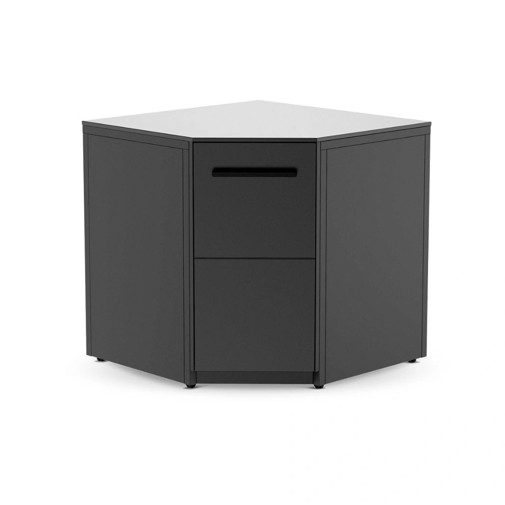 Dulapul pe colt 90 x 90 x 90 cm permite configuratii de bucatarie exterioara in forma de L, oferind spatiu de depozitare si o suprafata de lucru la o inaltime confortabila, de aproximativ 90 cm. Corpul este realizat din otel galvanizat si vopsit electrostatic in negru mat, iar usa si blatul de 15 mm din HPL sunt rezistente la zgarieturi, socuri, UV si intemperii. Include suport pentru butelie de pana la 11 kg, trecere pentru furtun si picioare reglabile pentru nivelare, cu o capacitate de incarcare de pana la 200 kg.