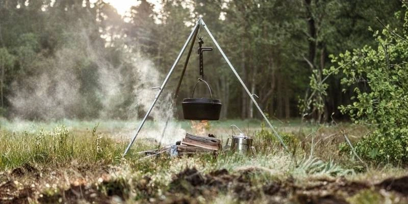 Solutie completa pentru gatit afara: foc deschis sau carbuni incinsi.