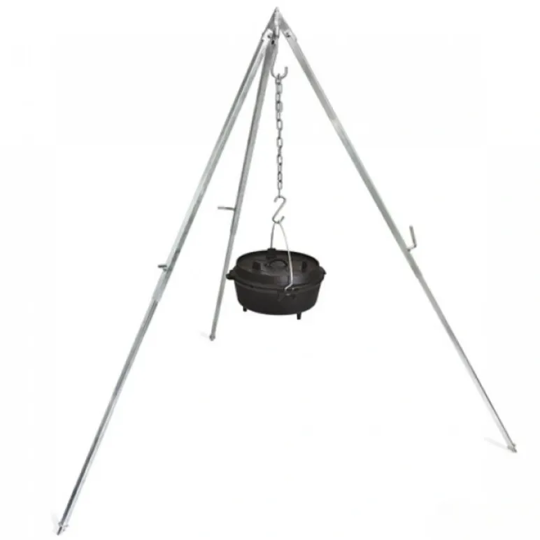 Montati trepiedul pe o suprafata stabila, agatati ceaunul in lant si reglati inaltimea fata de foc sau jar in functie de intensitatea dorita. Gatiti cu sau fara capac, iar pentru functie tip tuci olandez folositi capacul etans pentru inabusire si coacere lenta. Dupa utilizare, lasati fonta sa se raceasca, curatati, uscati complet si ungeti usor cu ulei inainte de depozitare.