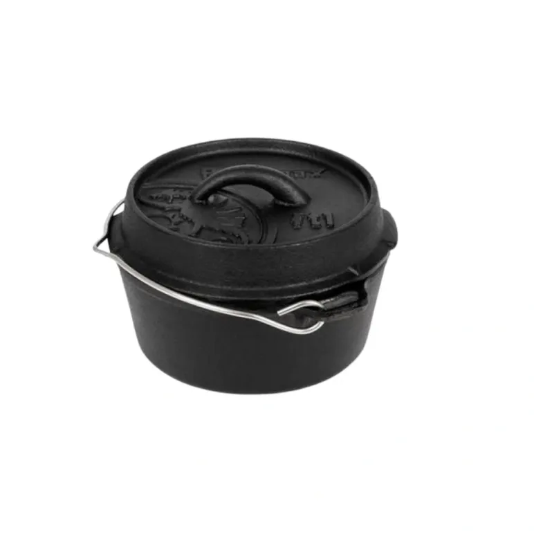 Ceaunul din fonta plat Petromax este un vas compact si multifunctional, potrivit pentru gospodarie si pentru gatit in aer liber, in excursii, drumetii sau camping. Capacitatea este de aproximativ 1 litru cu capac, ceea ce il face util pentru portii rapide, preparate simple si gatit controlat la foc sau jar. In fonta, carnea si legumele se gatesc pastrand sucurile proprii, iar aroma specifica focului se simte mai bine in preparat. Capacul adauga versatilitate: poate fi folosit separat ca farfurioara din fonta, avand un volum de 0.25 litri, utila la servire sau pentru incalzire usoara. Suprafata este pretratata finisaj tip patina, astfel incat ceaunul poate fi utilizat imediat, fara ardere prealabila. Forma plata il face usor de manevrat si potrivit pentru gatit in spatii restranse, atat acasa, cat si outdoor.
