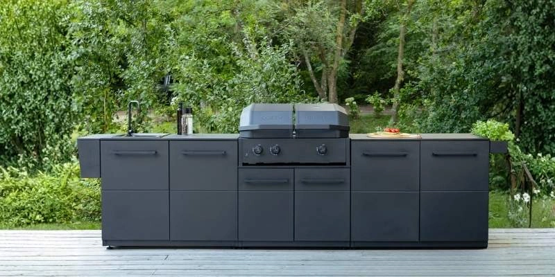 Constructia din otel zincat, vopsit in camp electrostatic, este gandita pentru utilizare repetata in exterior, iar finisajul negru se potriveste in bucatarii de vara moderne. Plancha din fonta emailata ajuta la retentia termica si distribuirea caldurii, iar suprafata este usor de intretinut dupa gatire. Cozze Quattro 900 este o statie completa de gatit pentru cei care vor flexibilitate, timp scurt de preparare si un echipament care poate sustine mesele in familie sau intalniri cu prietenii.