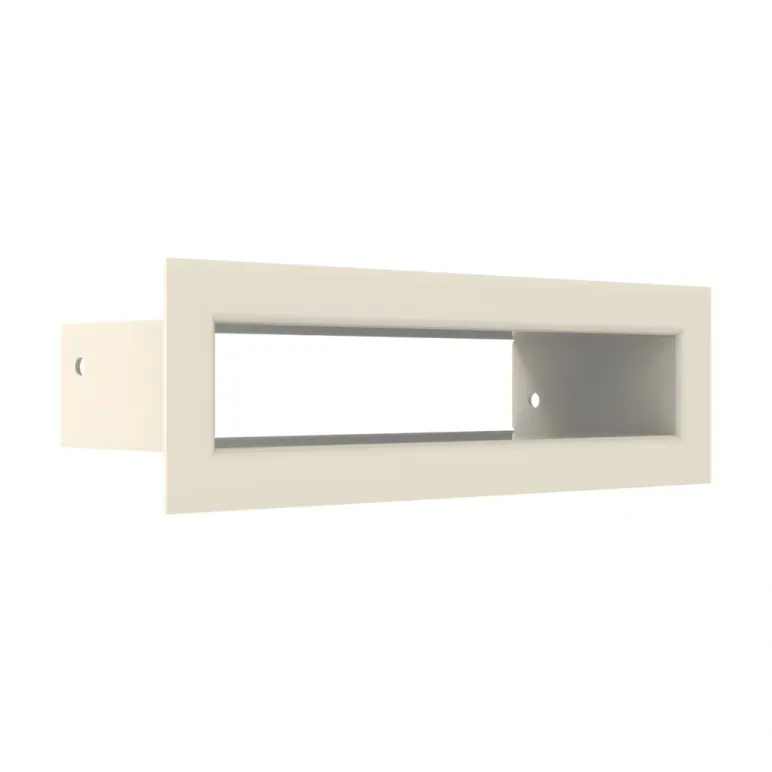 Grila metalica crem, tip tunel, cu aspect modern si discret, permite circulatia uniforma a aerului cald si rece, optimizand ventilatia semineului si confortul termic al incaperii.