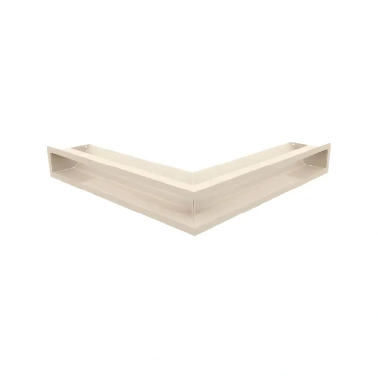 Grila Luft de culoarea crem pe colt cu dimensiunea 9/56/56 cm, este ideala pentru seminee si sisteme de ventilatie sau climatizare, oferind o circulatie uniforma si eficienta a aerului cald.