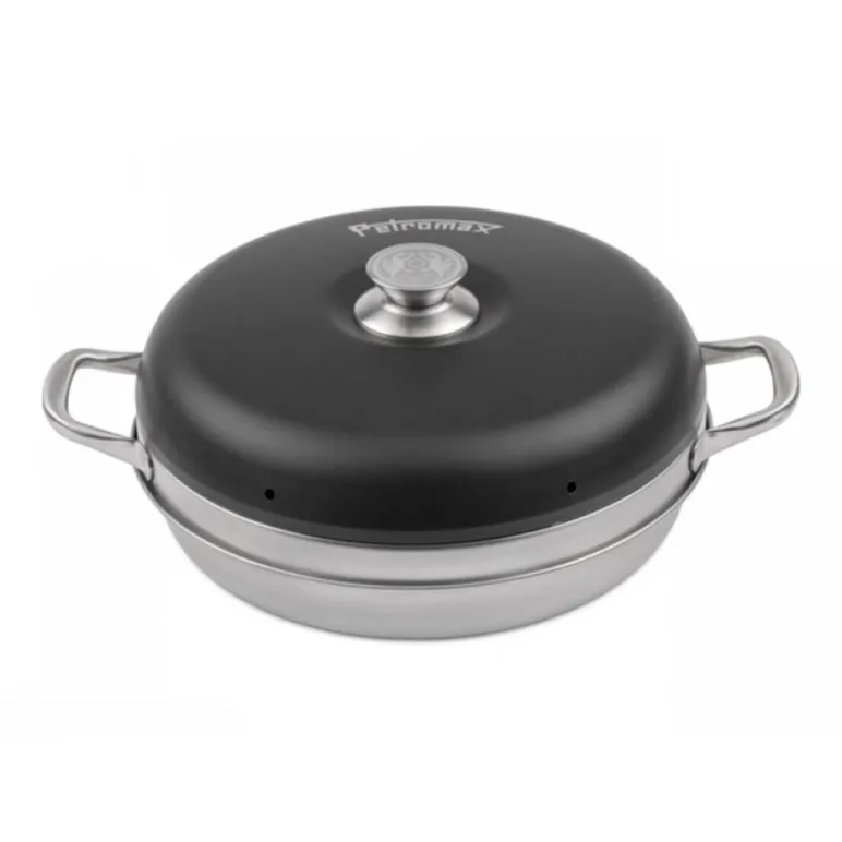 Cuptorul camping inox Petromax este un cuptor din otel inoxidabil, potrivit pentru gatit si coacere in outdoor sau in rulota, cu circulatie tripla a aerului pentru caldura uniforma.