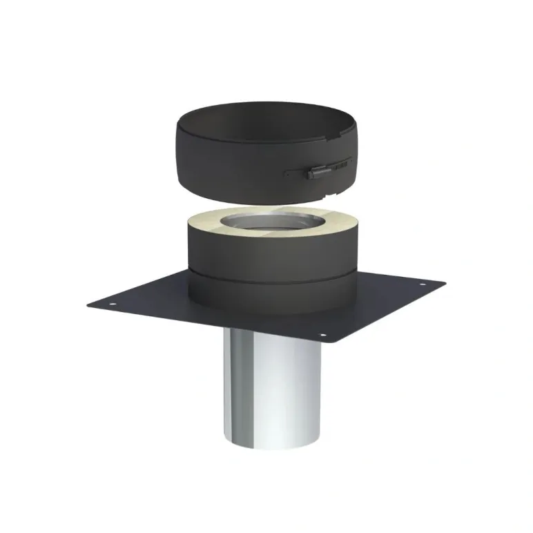 Element de legatura din otel inoxidabil, ce inchide peretele dublu cu izolatie si face trecerea la peretele simplu. Vopsit negru in camp electrostatic.