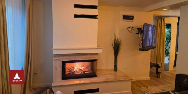 • Iesire de fum din fonta ajustabila: Permite instalarea si adaptarea usoara la instalatiile de cos de fum, asigurand o flexibilitate maxima in configurarea semineului.