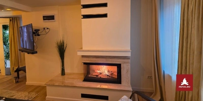 • Sticla decorativa: Decorul negru estetic confera semineului un aspect elegant, transformandu-l intr-un element functional si o aditie atractiva la interior.