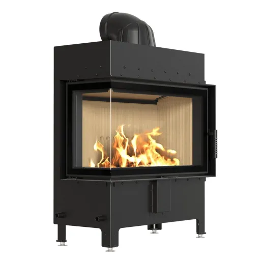 Focar PRO pe lemne FLOKI, dotat cu sticla pe colt si captuseala cu samota la interior.