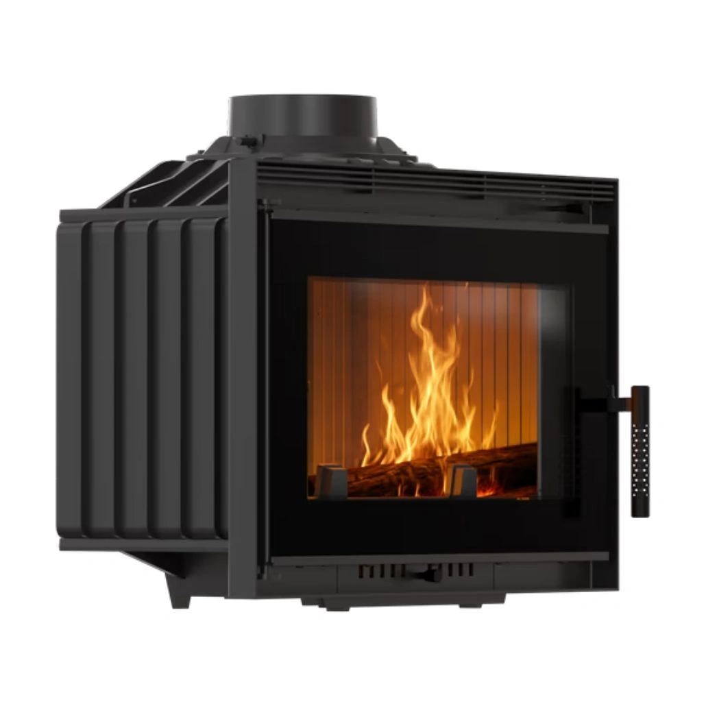Focar din fonta cu pereti de 8 mm, sticla termorezistenta cu model DECO, alimentare tripla cu aer, sticla curata, clapeta de tiraj si cenusar tip sertar.