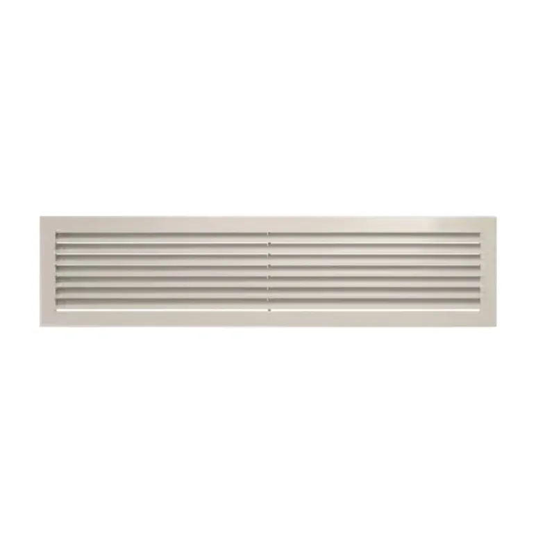Model de grila crem, cu lamele fixe, cu aspect modern si elegant, avand dimensiunea de 17x70.