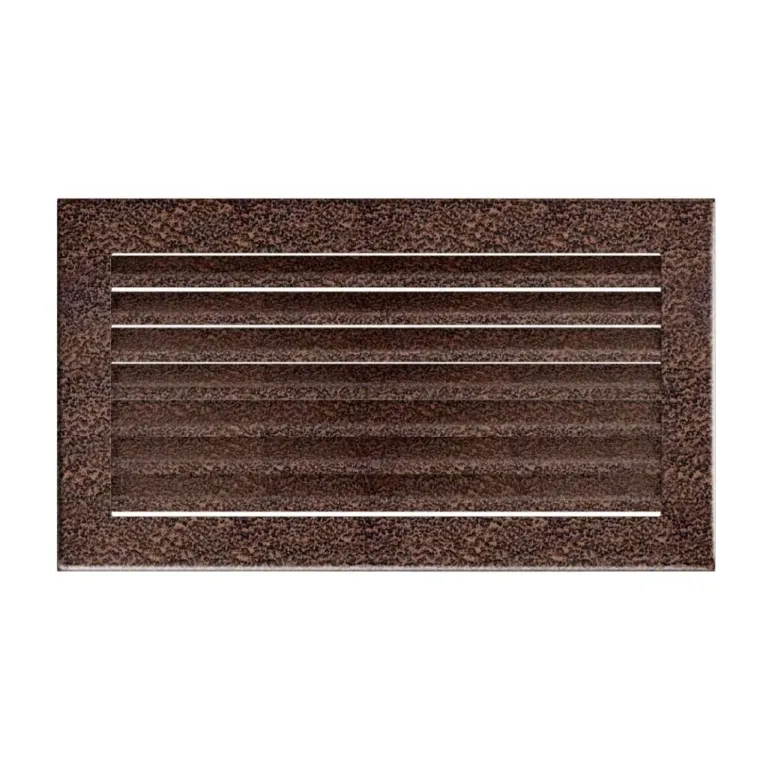 Grila metalica vopsita electrostatic in nuanta cupru, cu dimensiunile 17 / 30 cm, prevazuta cu lamele fixe, se integreaza armonios in orice interior cu design clasic.