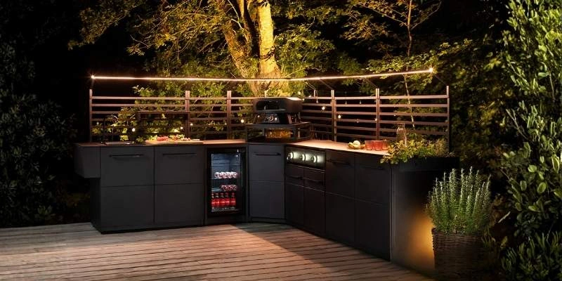 Colectia COZZE permite configurarea unei bucatarii de exterior cu piese care se imbina intre ele, pastrand un aspect scandinav minimalist. Frigiderul incorporabil de 63 litri adauga un spatiu dedicat pentru bauturi reci si ingrediente proaspete, chiar langa zona de gatit. Se integreaza in compartimentul special destinat, fara sa incarce vizual linia de mobilier. Racirea pe compresor mentine temperatura constanta pentru pastrarea alimentelor si a produselor pentru gratar. Iluminarea LED asigura vizibilitate clara inclusiv seara si ajuta la identificarea rapida a bauturilor si ingredientelor din interior.
