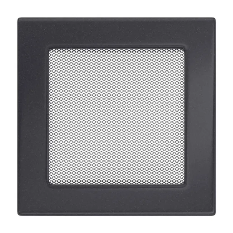 Grila de semineu vopsita in culoarea graphit, model simplu si usor de integrat in orice design. Dimensiuni 17 / 17 cm.