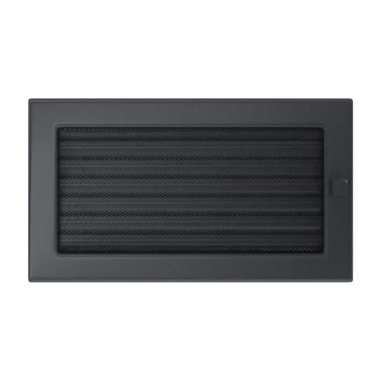 Grila cu jaluzea de control al fluxului de aer, vopsita in culoarea graphit, avand dimensiunile 17 / 30 cm.