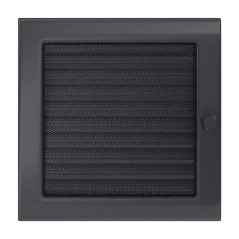Grila de aer cald culoarea graphit, dotata cu jaluzea pentru controlul fluxului de aer si dimensiunile 22 / 22 cm.