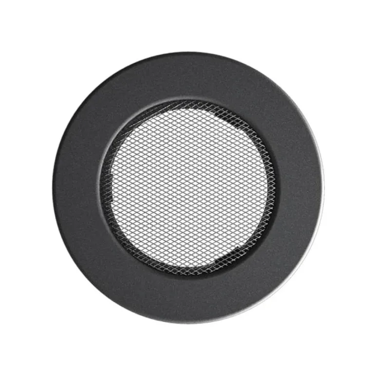 Grila rotunda, grafit, moderna si usor de montat cu cleme flexibile, rezistenta la temperaturi ridicate, asigura ventilatie eficienta si se integreaza elegant in orice interior.