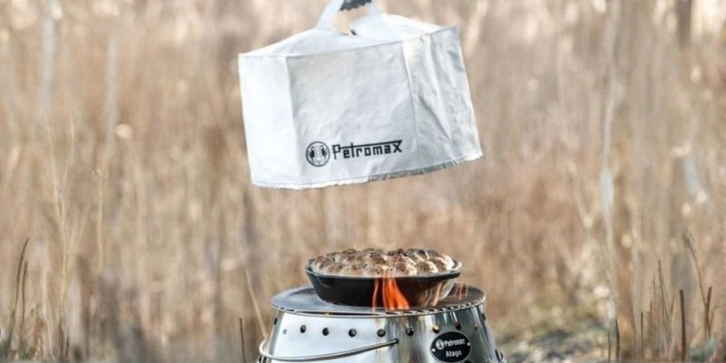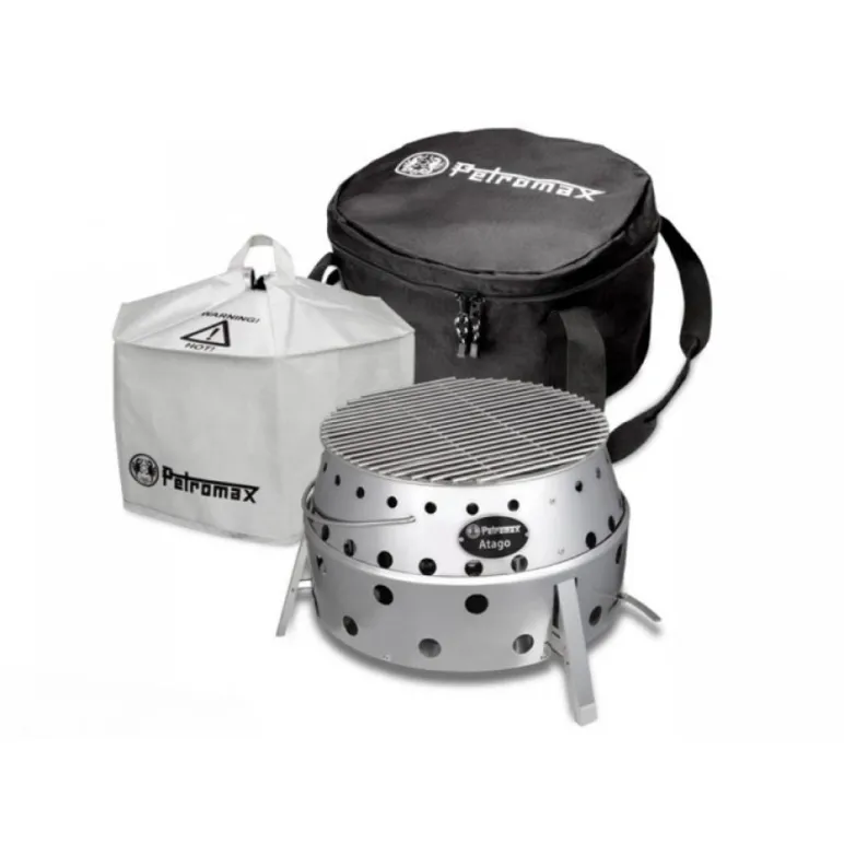 Petromax Atago cu capac cupola si geanta este un set 3 in 1 pentru gratar, vatra de foc si gatit tip cuptor, usor de luat oriunde.