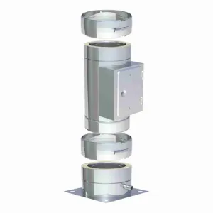 Kitul de baza DW-Eco fi 300, montat de pe sol, include elementele necesare pentru zona inferioara a cosului de fum si o usa de vizitare pentru inspectie si intretinere. In acest caz inaltimea totala se va calcula de la sol la care se adauga +25 cm.