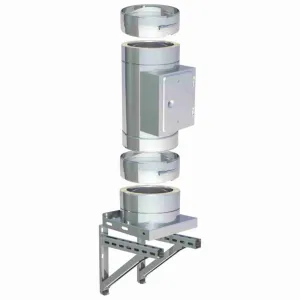 Kitul DW-Eco fi 300, varianta suspendata, include baza cu usa de vizitare si scurgere jos pentru condens, astfel incat zona inferioara a cosului ramane usor de intretinut si corect drenata.