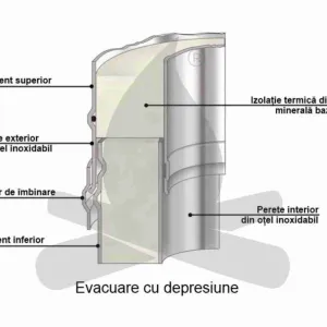 Sistemul de cos de fum din inox Permeter contine urmatoarele elemente componente, incepand de la partea superioara pana la baza acestuia: