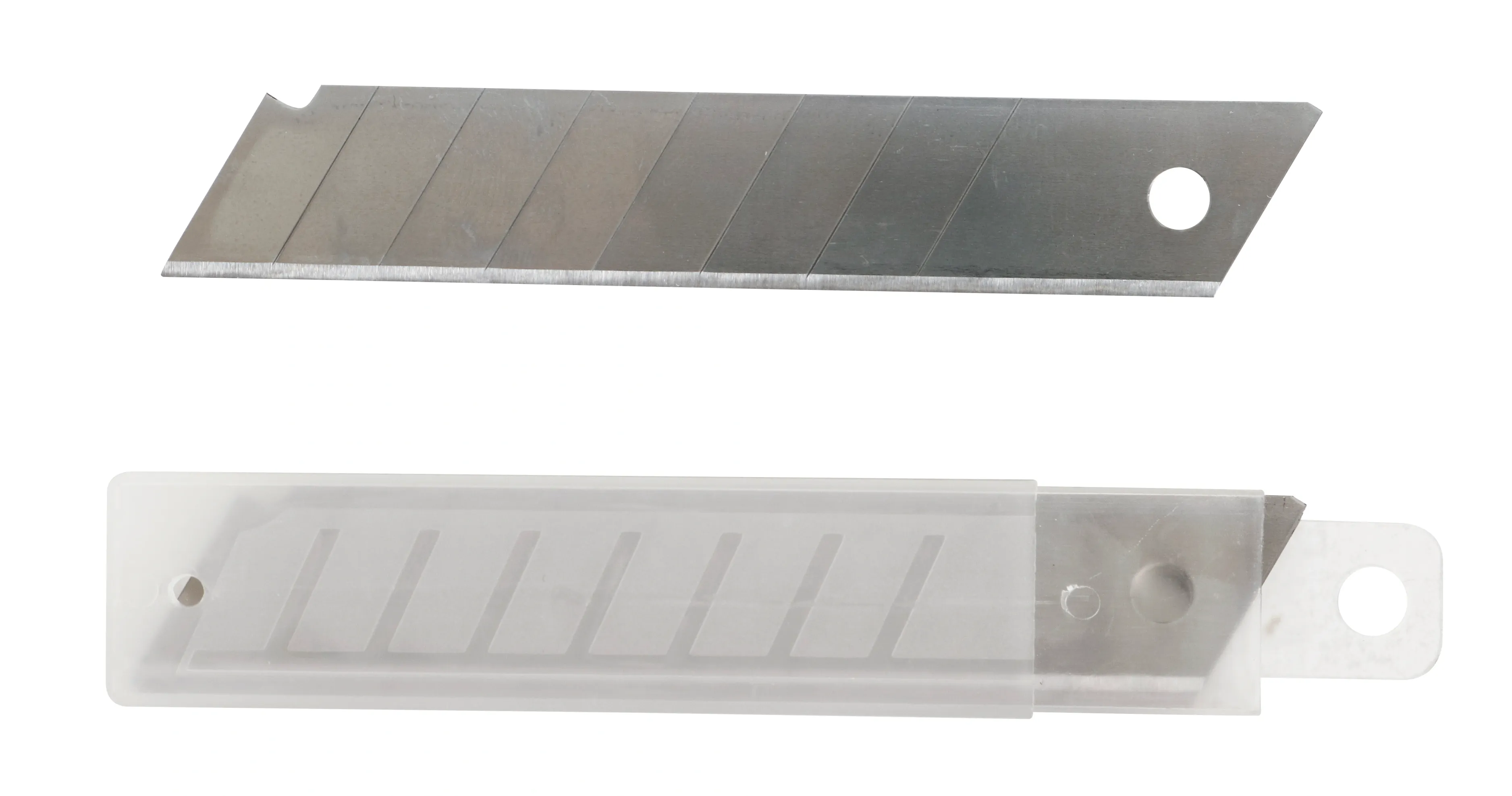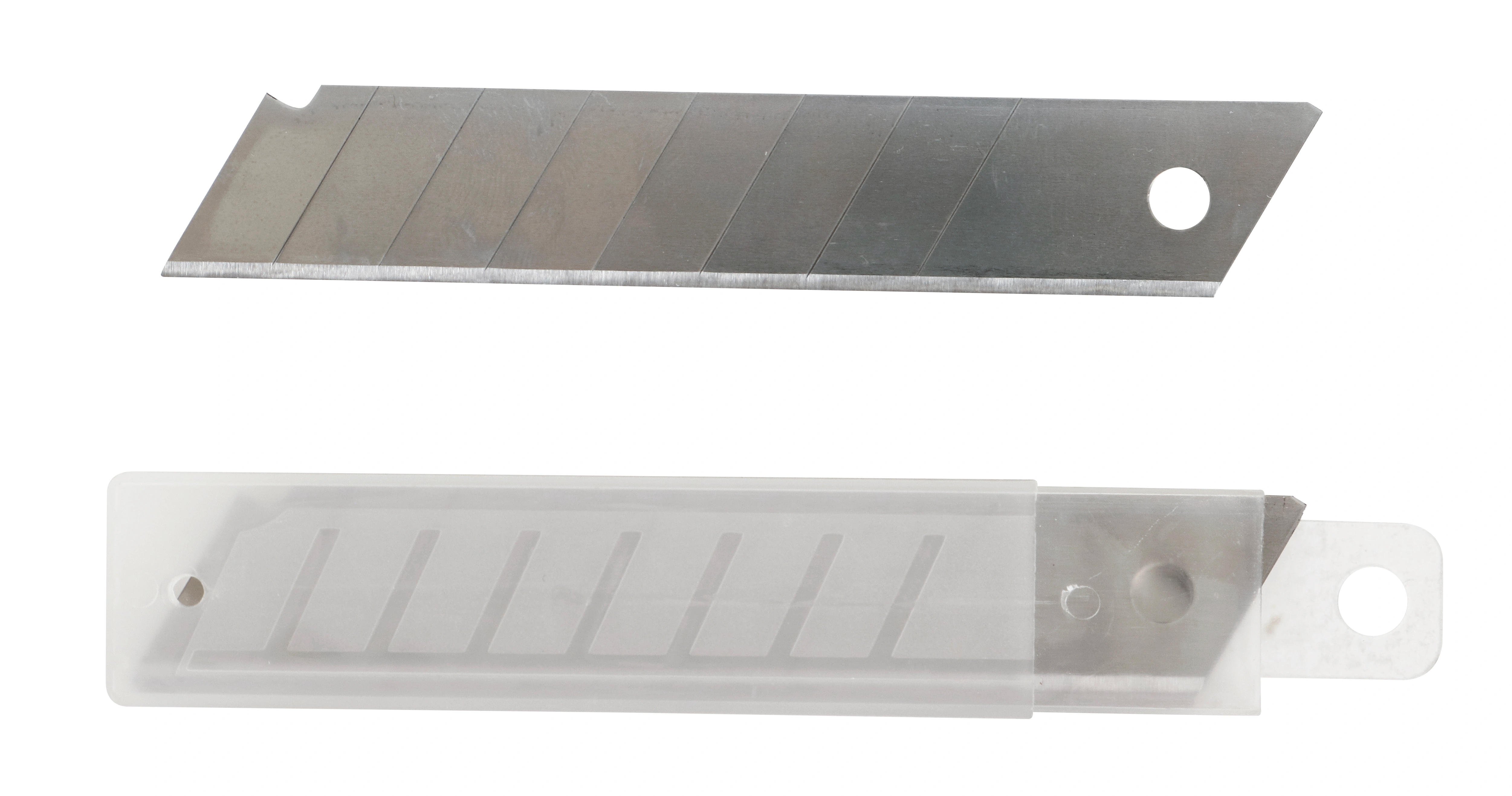 Set ce contine 10 lame pentru cutter cu latimea de 18 mm, ideale pentru taierea precisa a hartiei, cartonului, foliilor sau altor materiale usoare. Lamele sunt de tip break-off, permitand ruperea sectiunilor uzate pentru a expune rapid o portiune noua, ascutita. Fiecare lama este livrata intr-o cutie din plastic, care faciliteaza pastrarea in siguranta si accesul rapid la lame. Acest set ofera flexibilitate si precizie in orice lucrare, fiind potrivit atat pentru proiecte DIY, cat si pentru utilizarea profesionala in atelier sau birou.