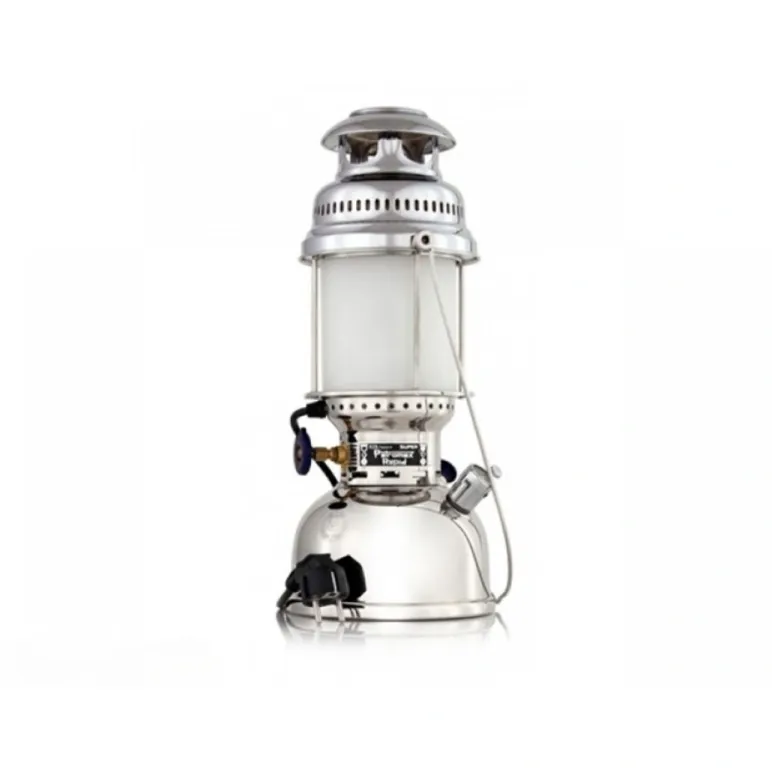 Lampa Petromax HK500, in varianta electrica, este destinata exclusiv utilizarii in spatii interioare si este conceputa pentru pozitionare pe masa. Pastreaza componentele de baza si aspectul emblematic al modelului HK500, cunoscut in versiunea originala pe ulei lampant, oferind acelasi farmec nostalgic al lampii traditionale, dar cu alimentare electrica. Modelul este realizat din alama cu finisaj crom si sticla mata Suprax, ofera lumina ambientala placuta si se foloseste usor datorita comutatorului accesibil, fiind potrivita pentru living, dormitor sau birou. Lampa electrica HK500 este disponibila si in alte variante de culoare alama sau auriu si in variante pentru agatare sau atarnare, pastrand acelasi stil Petromax.