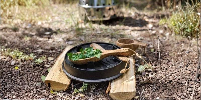 Se foloseste ca lingura, bol sau vas de servire la gatit in aer liber. Se curata manual cu sapun usor si putina apa, apoi se sterge si se lasa la uscat complet. Pentru intretinere, se freaca periodic cu ulei de masline si se lasa sa se usuce bine. In timpul transportului, se poate prinde de rucsac sau curea folosind cureaua de piele. Alimentele care pateaza puternic pot modifica nuanta lemnului.