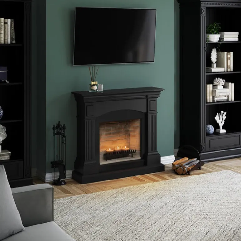 Semineul include doua suporturi laterale care permit instalarea usoara intr-o rama de semineu de lemn. Poate fi montat din spate, pentru un aspect minimalist, fara margini vizibile.