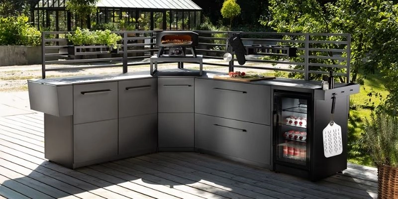 Colectia COZZE permite completarea bucatariei exterioare cu piese compatibile, alese in functie de spatiu si de modul de utilizare. Pe langa piesa pentru frigider, sunt disponibile si variante cu sertare, piese cu usi si suport pentru butelie, precum si varianta cu chiuveta. Pentru amenajari in forma de L, piesa de colt ajuta la folosirea eficienta a spatiului si la o aliniere corecta a liniei de mobilier. Accesoriile pentru panourile tip grilaj adauga organizare si iluminare, cu carlige, rafturi si elemente LED pentru utilizare comoda si seara.
