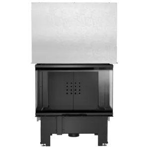 Focarul cu sticla pe trei laturi, cu deschidere verticala, prin glisarea usii, ce ofera un plus de confort acestuia si un design modern. Usa este prevazuta si cu deschidere standard, orizontala, pentru o curatare usoara a sticlei. Datorita samotei din interior si a sistemului de ardere pe vatra, procesul de ardere al lemnului este mai amplu, rezultand astfel reziduri de cenusa reduse. Focarul este dotat cu o evacuare reglabila la 360 grade, pentru o racordare facila la cosul de fum. ACesta este echipat la nivelul conului cu sistem de recuperare a caldurii, compus din tevi orizontale ce preiau din caldura gazelor de evacuare, crescand eficienta acestuia.