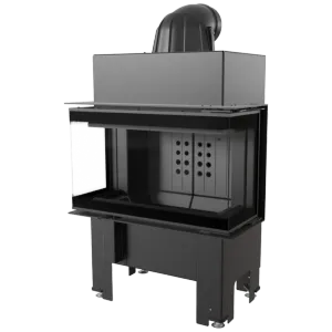 Focar cu sticla pe trei laturi si samota neagra la interior, ce ofera un design premium , fiind ideal pentru constructia semineelor in stil modern. Focarul este echipat la nivelul conului cu sistem de recuperare a caldurii, compus din tevi orizontale ce preiau din caldura gazelor de evacuare, crescand eficienta acestuia. Focarul nu este pretentios in ceea ce priveste cosul de fum, avand evacuare cu diametru de dimensiune mai mica. Pe conul focarului este amplasata o evacuare reglabile la 360 grade, pentru a facilita racordarea acestuia la cosul de fum.