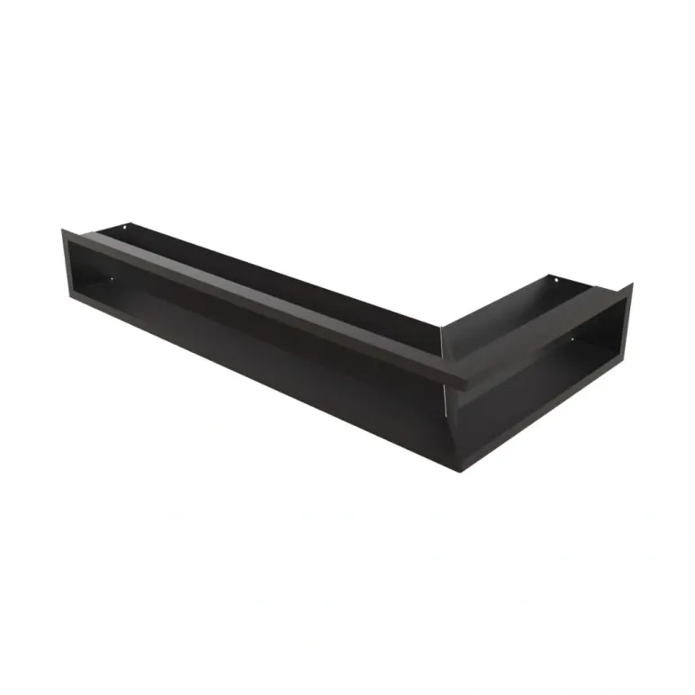 Grila Luft neagra pe colt de 12/80/40 cm, ofera circulatie optima a aerului cald si imbina un design elegant cu utilitate practica, fiind potrivita pentru seminee si sisteme de ventilatie sau climatizare.