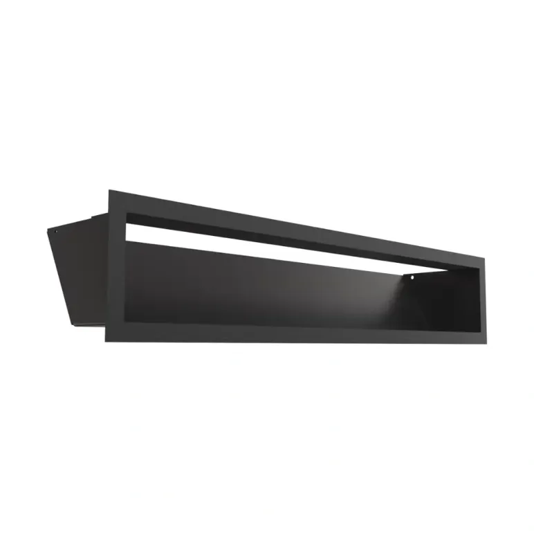 Grila de semineu Luft neagra 12/60 cm, cu design modern si constructie rezistenta din metal, ofera o circulatie eficienta a aerului cald si completeaza elegant semineele contemporane.
