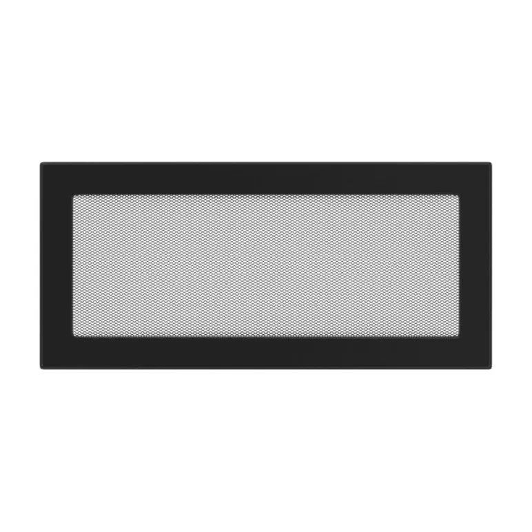 Grila de evacuare a aerului cald de la semineu, de culoare neagra. Design simplu si dimensiunile 17 / 37 cm.