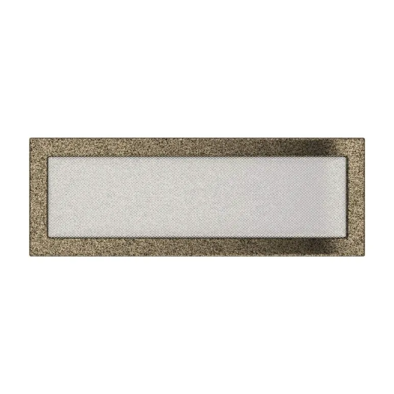 Grila cu sita cu design simplu si elegant, vopsita cu o vopsea de tip pulbere in nuanta de negru-auriu, avand dimensiunile de 17/49 cm.