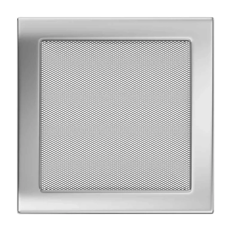 Grila metalica de evacuare a aerului cald si de aerisire a hotei semineului, nichelata, cu dimensiunile 22 / 22 cm.