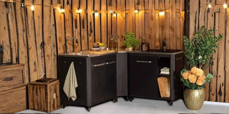 Pachetul Bucatarie exterioara Cozze, include un blat din inox cu chiuveta incorporata, un modul de colt pentru conectarea pieselor in L si o masa din inox pentru extinderea suprafetei de lucru, potrivit pentru terasa sau gradina cu suprafete rezistente si usor de intretinut.