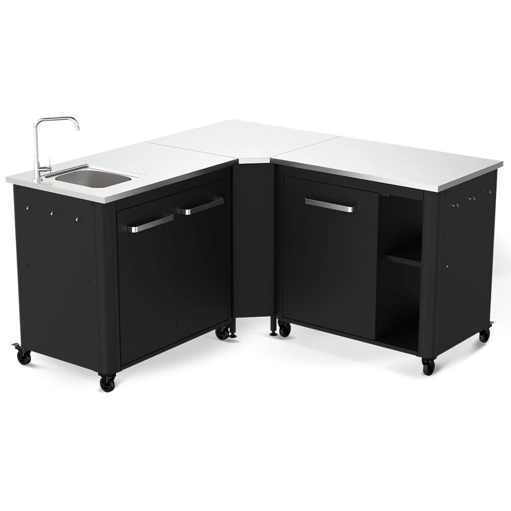 Pachetul Cozze combina blat cu chiuveta inox, element de colt si masa inox intr-o configuratie practica in forma de L, potrivita pentru terasa sau gradina. Ofera spatiu de pregatire, spalare si organizare intr-un singur ansamblu. Suprafetele sunt usor de intretinut pentru utilizare frecventa in aer liber.