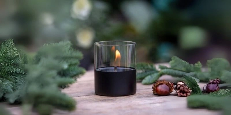 Lumanarea decorativa TenderFlame Lilly 10 combina eleganta sticlei negre cu siguranta arderii pe baza de Tenderfuel, oferind o flacara constanta, fara fum sau miros, ideala pentru orice ambient.