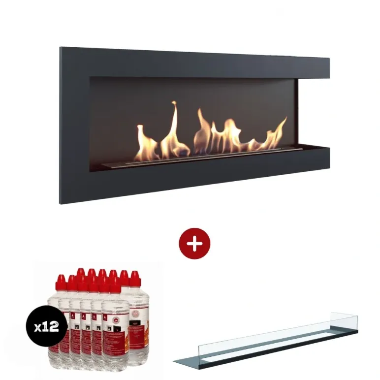 Pachetul Pro DELTA Negru colt dreapta - 120 x 48 x 28 cm + sticla biosemineu + 12L bioetanol imbina designul modern cu functionalitatea ecologica, oferind o solutie eleganta de incalzire si decor pentru orice interior. Biosemineul cu design de colt si sticla de protectie permite vizualizarea flacarii din doua unghiuri, creand un efect panoramic spectaculos. Construit din otel vopsit termorezistent si prevazut cu recipient sigur certificat TÜV, acesta functioneaza fara fum, fara miros si fara cos de evacuare. Bioetanolul inclus este un combustibil ecologic lichid, obtinut din materii prime vegetale, care arde complet fara a produce fum, cenusa sau miros. Elibereaza doar vapori de apa si cantitati reduse de CO2, fiind sigur pentru utilizare in interior. Ofera o ardere stabila si eficienta, asigurand flacara reala si o atmosfera placuta, curata si confortabila in orice incapere.